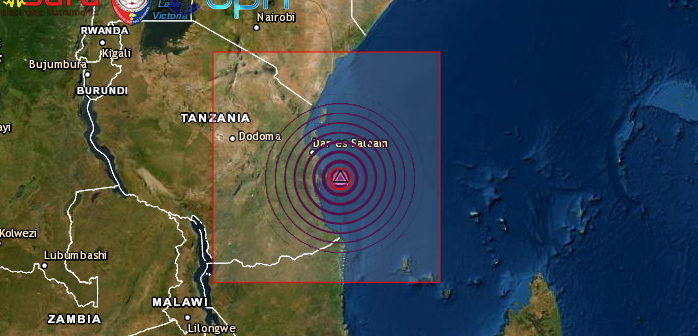 FORTE SCOSSA DI TERREMOTO DI Mw 6.0 AL LARGO DELLE COSTE DELLA TANZANIA