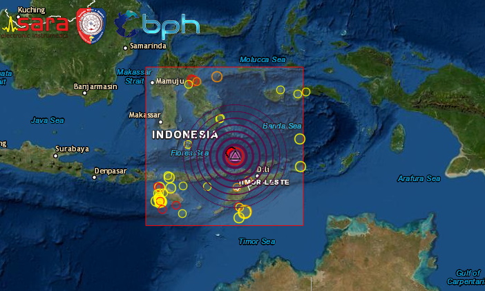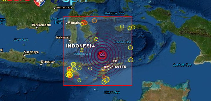 FORTISSIMA SCOSSA DI TERREMOTO DI Mw 6.9 TRA IL MARE DI FLORES E IL MARE DI BANDA IN INDONESIA