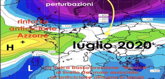In effetti di norma in questo mese almeno negli ultimi 10 anni è stato quasi sempre protagonista assoluto l’anticiclone Nord africano, mentre quello delle Azzorre, che aveva deliziato le nostre estati fino agli anni ’80, era rimasto quasi sempre assente.