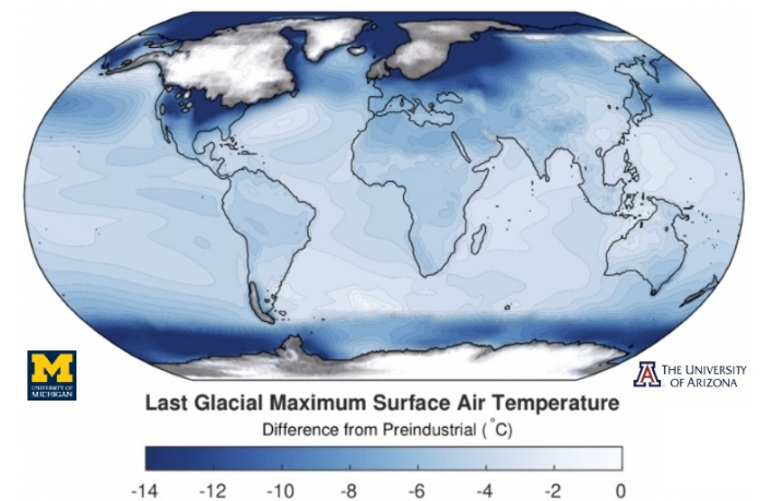 La risposta data dallo studio è che la  temperatura globale era allora di circa 6° C più fresca di quella odierna e la temperatura media globale del XX secolo era di 14° C. La Tierney spiega ancora: «Nella nostra esperienza personale potrebbe non sembrare una grande differenza, ma, in realtà, è un enorme cambiamento». Un altro autore dello studio, Christopher Poulsen dell’università del Michigan, conferma: «6 gradi di raffreddamento medio globale sono enormi. Il mondo sarebbe sembrato molto diverso durante l’ultimo massimo glaciale. Le parti settentrionali del Nord America, incluso qui ad Ann Arbor, nel Michigan, erano coperte da chilometri di ghiaccio. Il raffreddamento maggiore è stato alle alte latitudini».