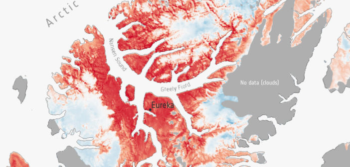 Sentinel-3 ha registrato la temperatura di 21,9°C a Eureka, nell’Artico canadese, la più alta mai segnalata così a nord