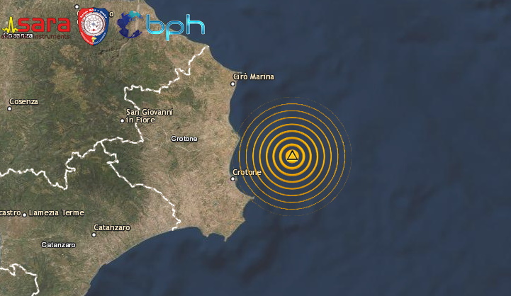 Epicentro in mare al largo di Crotone, ipocentro superficiale, evento avvertito dalla popolazione nelle zone costiere