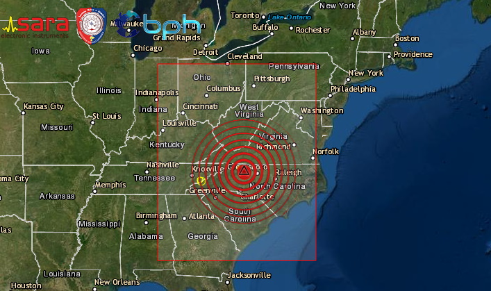 SCOSSA DI TERREMOTO DI Mw 5.1 NELLA ZONA AL CONFINE TRA NORTH CAROLINA E VIRGINIA (USA)