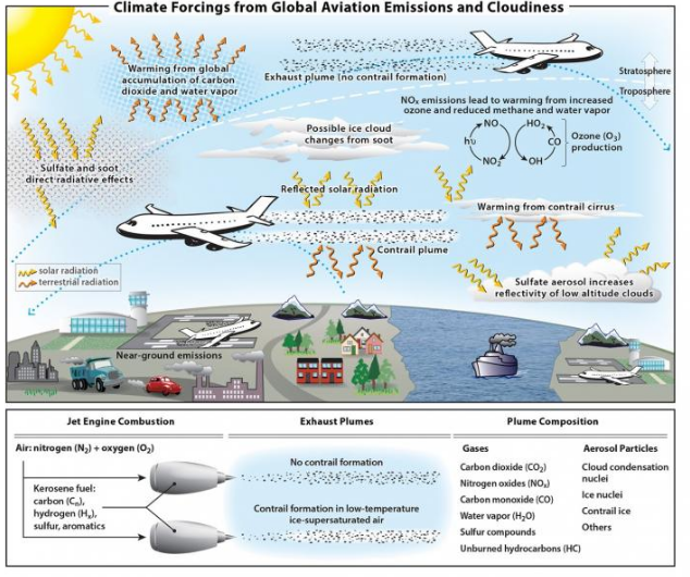 Secondo lo studio “The contribution of global aviation to anthropogenic climate forcing for 2000 to 2018”, pubblicato su Atmospheric Environment da un team internazionale di ricercatori guidato dalla Manchester Metropolitan University e del quale fa parte Giovanni Pitari dell’università degli studi dell’Aquila, l’aviazione rappresenterebbe il ​​3,5% di tutte le attività umane che stanno portando al cambiamento climatico.