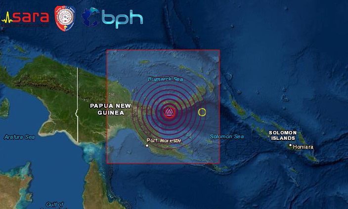 Epicentro in mare a sud dell’Isola di New Britain, ipocentro a circa 110 km di profondità, non ci sono danni