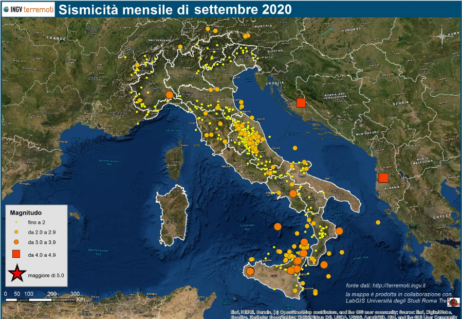 INGV: ecco le mappe mensili della sismicità di settembre 2020