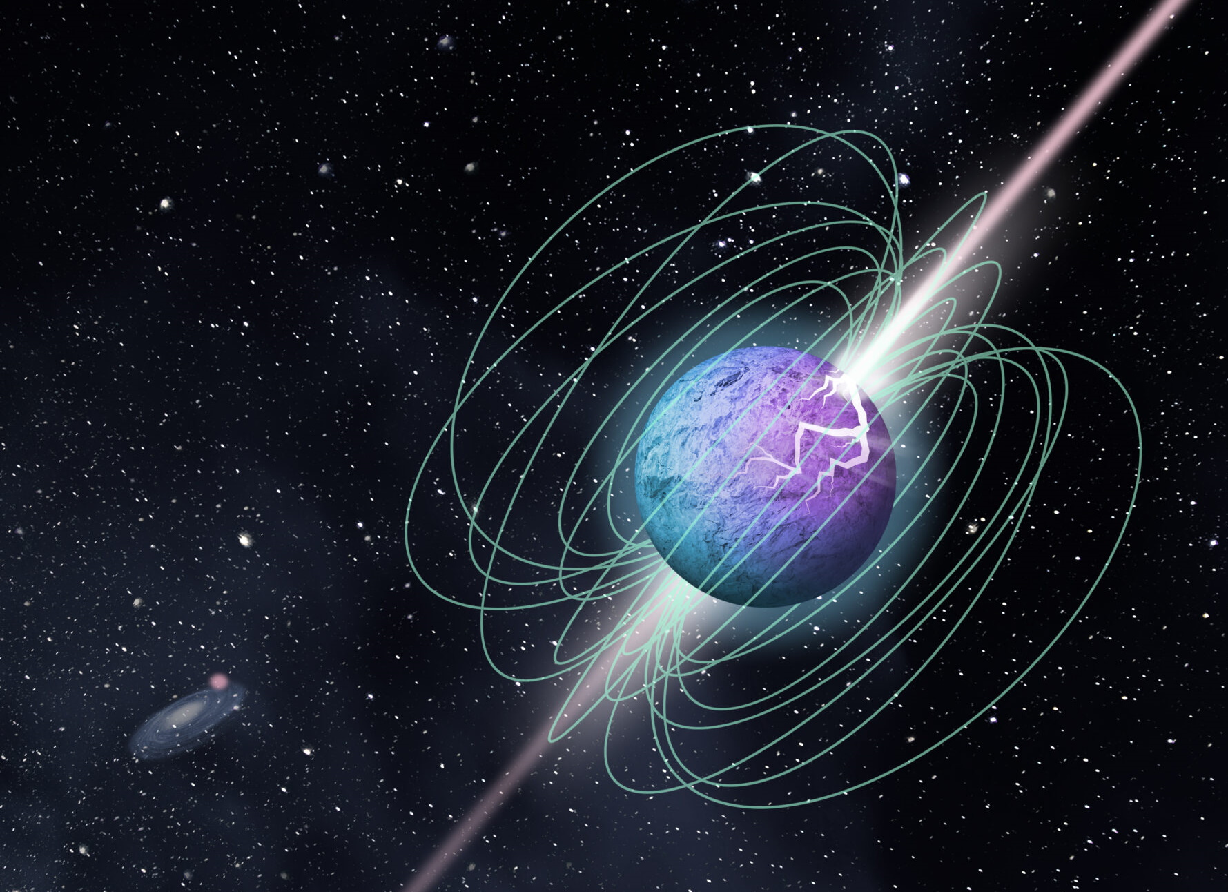 Il lampo radio veloce, chiamato Frb 200428, è stato captato il 28 aprile 2020 dal radiotelescopio canadese Chime (Canadian Hydrogen Intensity Mapping Experiment) e da quello americano Stare2 (Survey for Transient Astronomical Radio Emission 2). Il segnale è stato accompagnato anche da una violenta emissione di raggi X e gamma e, grazie anche al monitoraggio del telescopio cinese Fast (Five-hundred meter Aperture Spherical Telescope), è stato associato alla magnetar SGR 1935+2154, all’interno della Via Lattea. Si tratta di un particolare tipo di stella di neutroni, ciò che resta di stelle giganti esplose: oggetti cosmici così densi che un cucchiaino della loro materia sulla Terra peserebbe un miliardo di tonnellate, quasi quanto 170 milioni di elefanti.