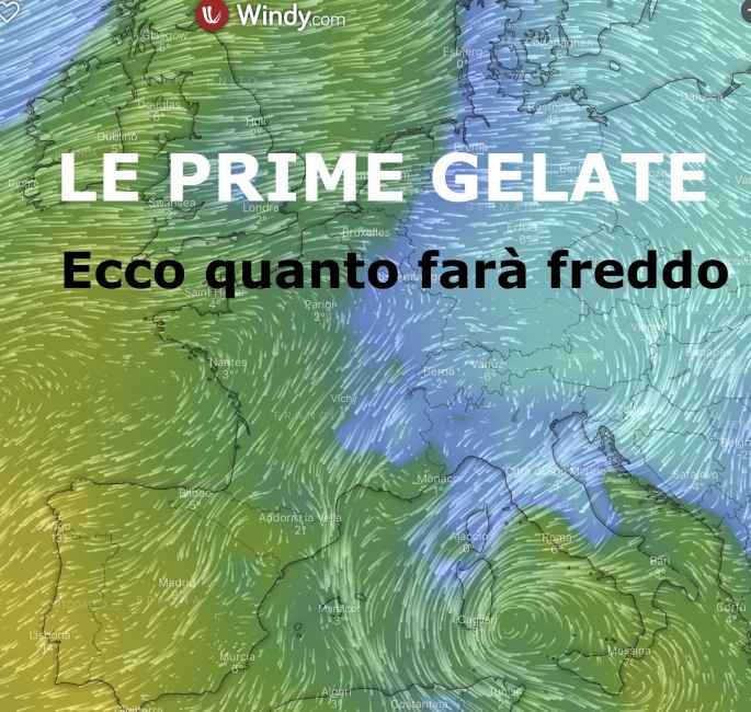 Tale vortice richiamerà nel prossimo fine settimana venti di Bora verso le regioni adriatiche dai Balcani (immagine di copertina). Le regioni Nord occidentali invece resteranno sottovento per cui qui è previsto cielo sereno. Ma la serenità del cielo favorirà tra sabato e 21 e lunedì’ 23 le prime serie gelate anche in pianura e il primo vero intenso freddo, seppure limitatamente alle ore notturne e del primo mattino