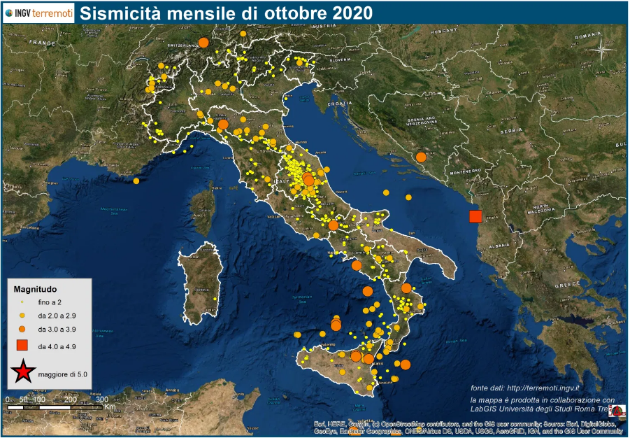 Le mappe mensili della sismicità di ottobre 2020