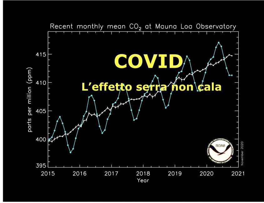 In realtà paradossalmente al 1^ novembre 2020 la concentrazione di CO2 è aumentata rispetto al 1^ novembre 2019