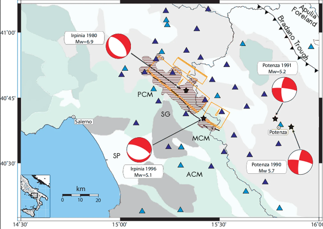1. Come avvenuto in occasione dei terremoti precedenti (Friuli 1976) e successivi al terremoto del 1980 accaduti lungo la catena appenninica italiana (Abruzzo, 1984; Colfiorito; 1997; L’Aquila, 2009; Amatrice, 2016), episodi di frattura multipli con magnitudo comparabile, lungo segmenti adiacenti di faglia e a distanza temporale variabili (da pochi secondi, ore, giorni o addirittura mesi) sono molto probabili, visto il livello di elevata segmentazione dei sistemi di faglia appenninici. Questa è una peculiarità della sismicità italiana che ha importanti ricadute sia sulla pianificazione delle azioni di soccorso nel post-evento che sul grado di resistenza degli edifici, sottoposti a scuotimenti forti, prossimi alla soglia del danno strutturale a piccola distanza temporale. Anche dal punto di vista scientifico, la complessità del processo di fratturazione multipla richiede teorie, metodi e analisi di dati che includano meccanismi di mutuo innesco e segmentazione del processo di sorgente.
