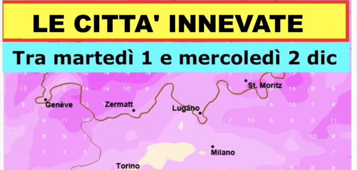 - Le nevicata anche in pianura dovrebbe avvenire tra la fine del martedì 1 dicembre e il 2 dicembre;