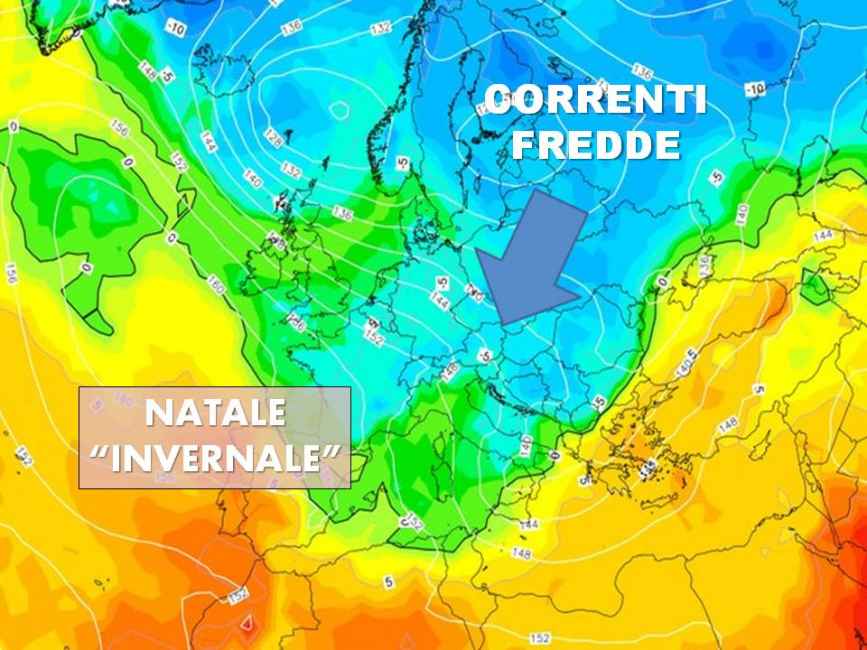Ecco allora che a Natale ci attende un brusco e deciso calo delle temperature, con il freddo che si farà sentire, da nord a sud, in tutto il Paese! La sensazione di freddo verrà peraltro accentuata dai gelidi venti settentrionali che spazzeranno cin vigore gran parte della Penisola. Difficile invece, allo stato attuale, stabilire se, ed eventualmente dove, arriveranno piogge e nevicate degne di nota: in base alle proiezioni attuali, la strada scelta dalle correnti gelide per intrufolarsi sull’Italia, suggerirebbe uno scenario con poche piogge e poche nevicate, ma mancando ancora una settimana si tratta di proiezioni suscettibili di variazioni anche importanti.