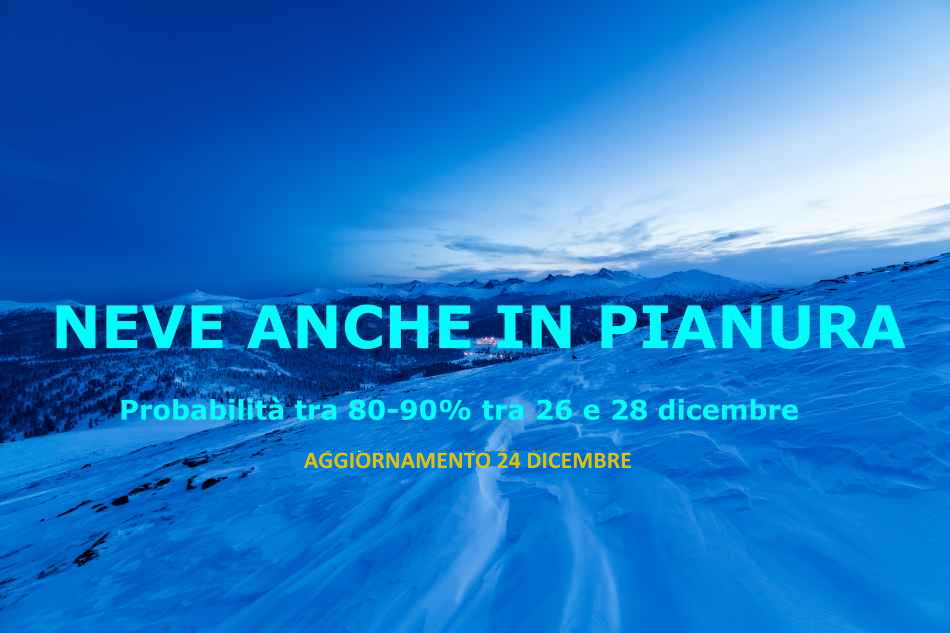 Ormai manca poco alle probabili nevicate anche in pianura tra il 26 e il 28 dicembre e quindi l’affidabilità (non certezza!) delle proiezioni dei modelli su tali valdità è ormai elevata (80-90%) per cui è giusto che il Meteorologo rompa gli indugi.