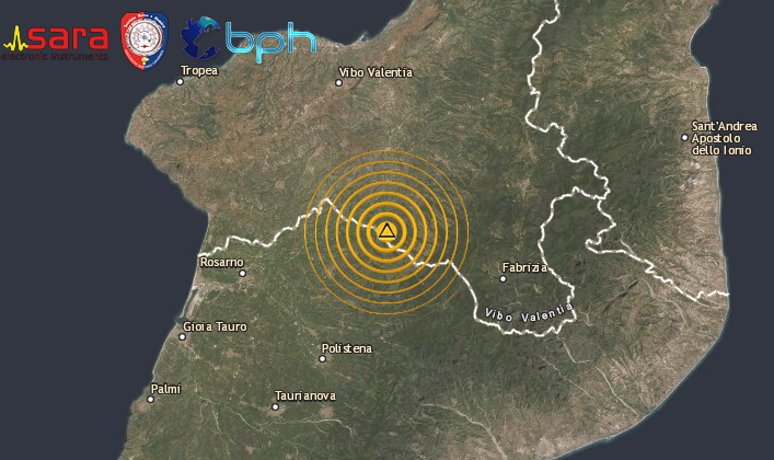 SCOSSA DI TERREMOTO DI Ml 3.6 IN PROVINCIA DI VIBO VALENTIA IN CALABRIA