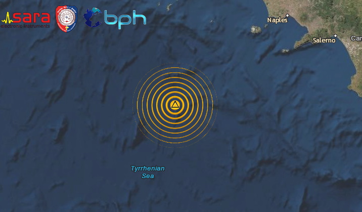 Una scossa di terremoto di magnitudo 3.8 è avvenuta alle ore 02:49:57 italiane nel Mar Tirreno Meridionale, in una zona molto al largo delle coste della Campania, con ipocentro in mare alla profondità di 506 km.