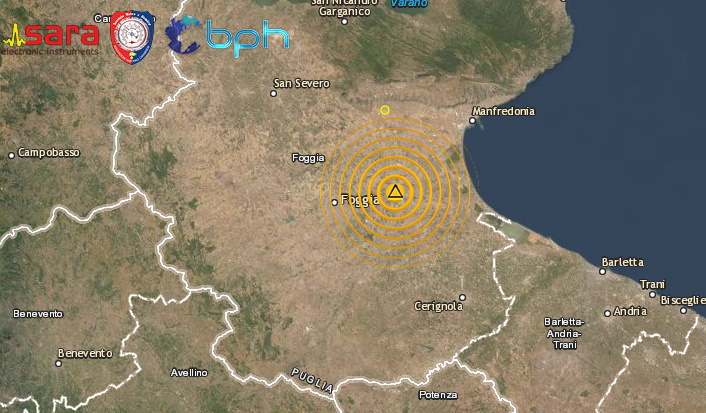 Epicentro nella zona di Foggia, sisma distintamente avvertito dalla popolazione in zona epicentrale