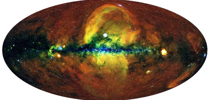 Il telescopio eRosita ha effettuato una scansione profonda del cielo in meno di sei mesi. Gli autori dello studio, tra i quali i ricercatori italiani dell’Istituto Nazionale di Astrofisica (Inaf), descrivono “un’enorme struttura gassosa a forma di clessidra, i cui lobi si dipartono dal centro della Via Lattea, al di sopra e al di sotto del piano del disco galattico”. Secondo gli esperti, “le sterminate bolle di eRosita sarebbero onde d’urto generate dall’attività energetica passata al centro della nostra galassia”.