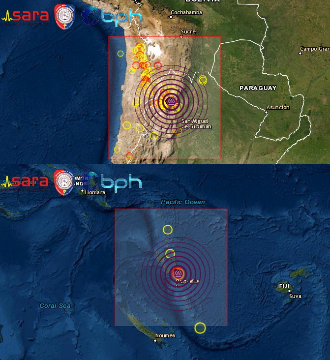 DOPPIA FORTE SCOSSA DI TERREMOTO DI Mw 6.1 IN ARGENTINA E ALLE VANUATU
