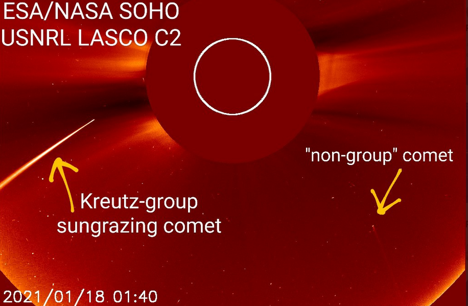 La seconda cometa, meno luminosa, non appartiene a nessuna famiglia conosciuta, fanno notare gli astronomi. Che le due comete abbiano condiviso lo stesso destino nello stesso tempo, precisano gli esperti, è solo una coincidenza. Entrambe le tracce sono rimaste visibili poche ore, prima che il calore del Sole vaporizzasse le due comete.