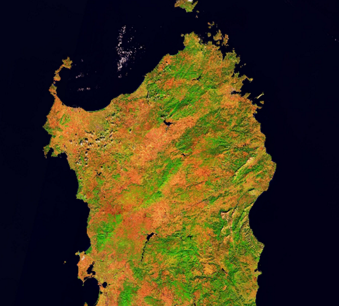 L’Agenzia spaziale europea (Esa) ha pubblicato, il 22 gennaio 2021, un’immagine della Sardegna frutto dell’elaborazione di varie pose scattate, tra l’11 e il 14 ottobre 2019, da uno dei due satelliti Copernicus Sentinel 2 in varie frequenze dei raggi infrarossi. La risoluzione di cui sono capaci questi strumenti è eccezionale, tenendo conto che operano in infrarosso: arrivano a un dettaglio di 20 metri per pixel dell’immagine.