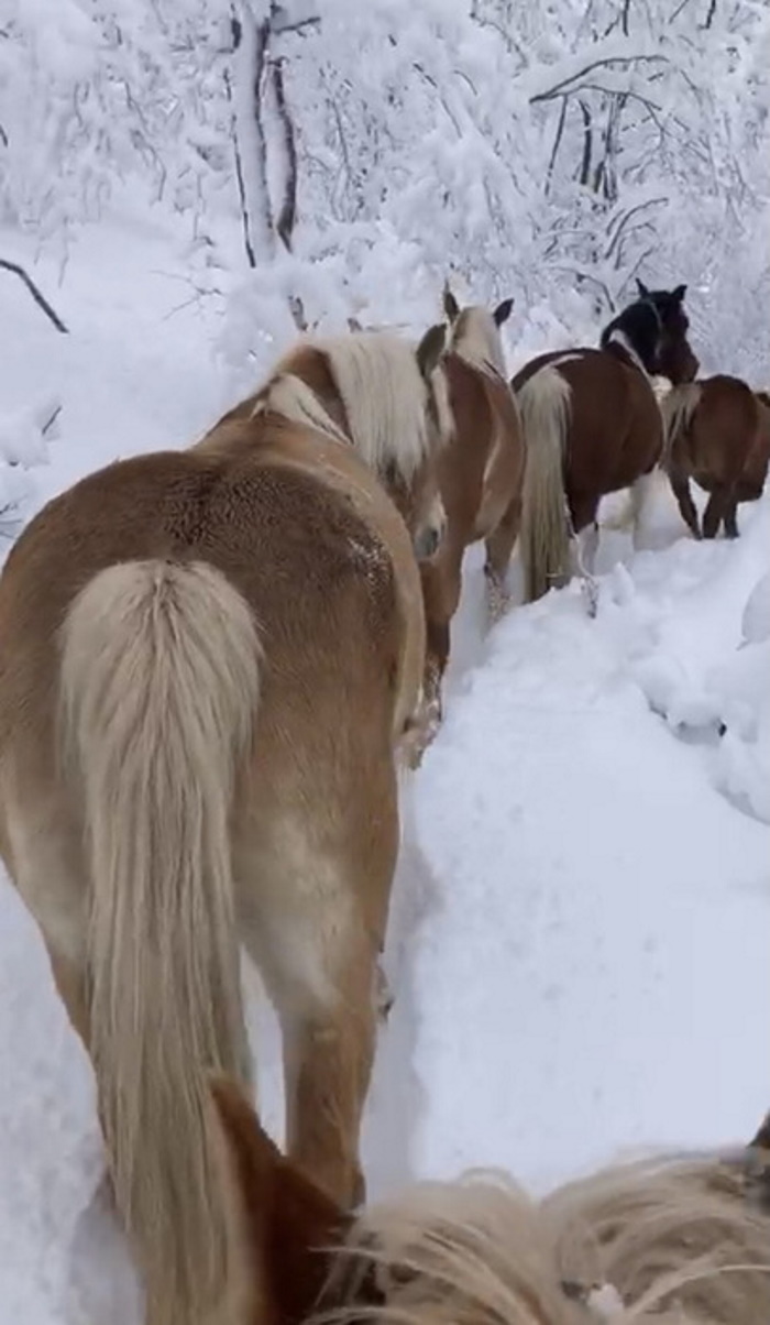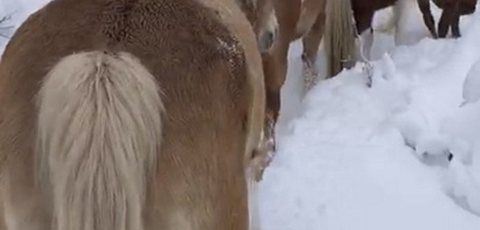 Spettacolare transumanza di cavalli con oltre mezzo metro di neve da Castelluccio all’abitato di Norcia. “E’ stata una vera e propria impresa, era la prima volta che portavamo i cavalli a valle con tutta questa neve”, ha raccontato all’ANSA Manuela Brandimarte del “Sibillini Ranch“.