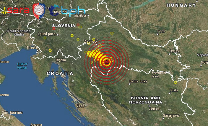 L’epicentro è stato regitrato a 10 km a WNW della località di Petrinjia, potrebbero esserci ulteriori sono danni. L’evento è stato avvertito in molte zone del Nord-est d’Italia e sulla costa Adriatica settentrionale