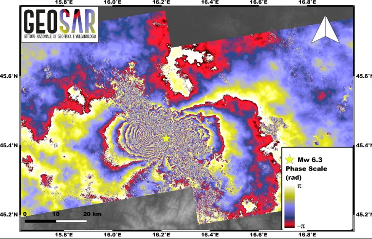 L’evento sismico di magnitudo Mw 6.4 avvenuto il 29 dicembre in Croazia, circa 50 km a sud della capitale Zagabria, è stato studiato con la tecnica dell’interferometria SAR (InSAR) applicata alle immagini satellitari acquisite in orbita ascendente dalle missioni Sentinel-1 dell’Agenzia Spaziale Europea (ESA) il 24 ed il 30 dicembre.