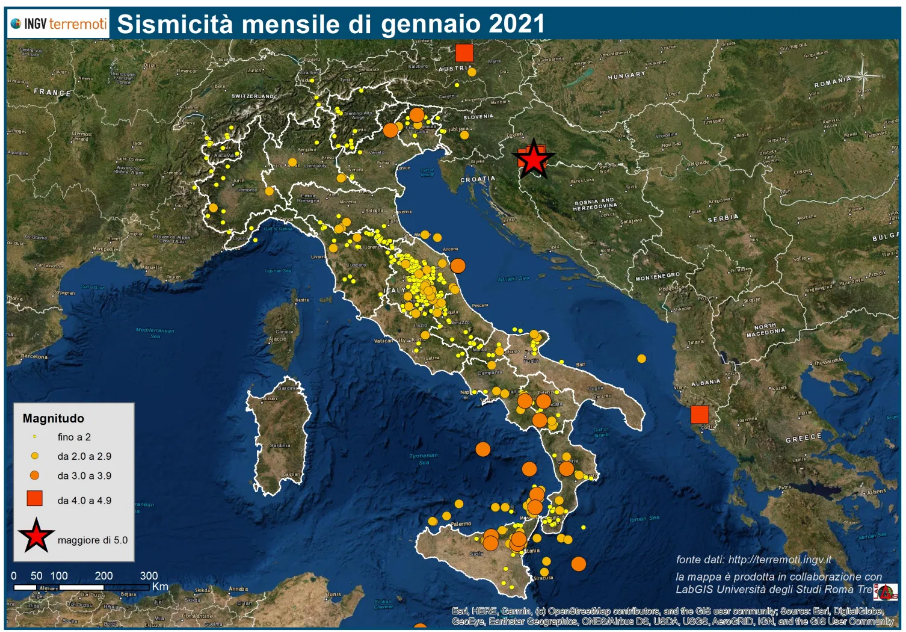 INGV: le mappe mensili della sismicità di gennaio 2021