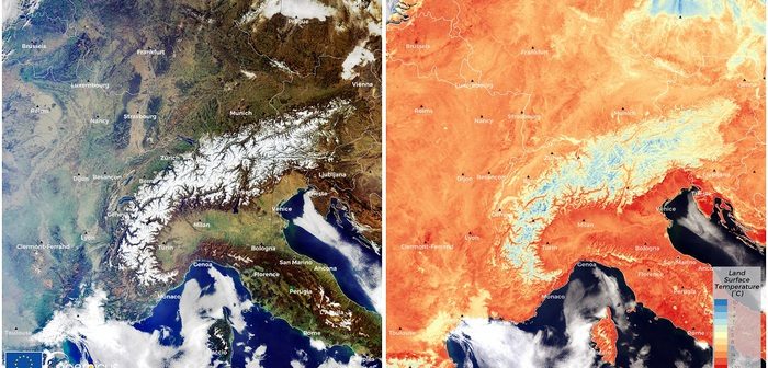 Lo ‘sguardo’ dei due satelliti si è posato in particolare sull’Italia centro-settentrionale e sugli altri Paesi confinanti dell’Europa centrale, dove in questi giorni sono state registrate temperature superiori anche di 12 gradi rispetto alla media stagionale.