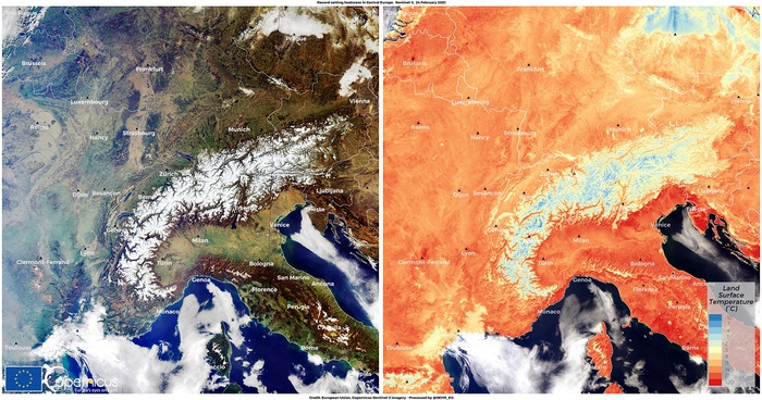 L’ondata di caldo di fine febbraio sull’Europa vista dallo spazio