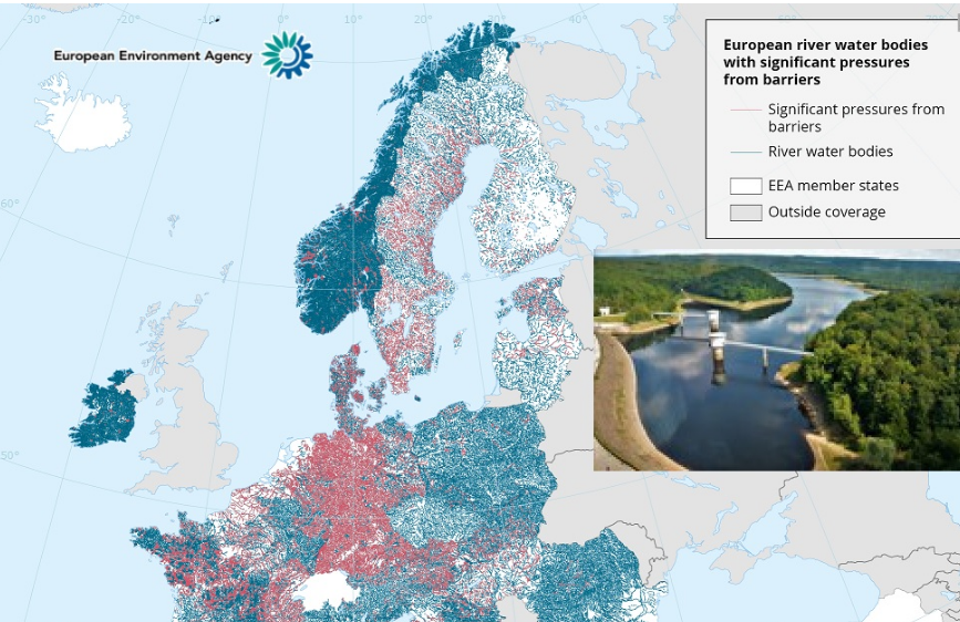 Ma l’Eea evidenzua che «Gli obiettivi ambientali della direttiva quadro sulle acque (2000/60 / CE) sono un forte motore per ripristinare la continuità fluviale. Per raggiungere gli obiettivi della direttiva quadro sulle acque, la frammentazione dei fiumi deve essere affrontata con misure quali aiuti alla migrazione (per pesci e altra fauna) e rimozione delle barriere».