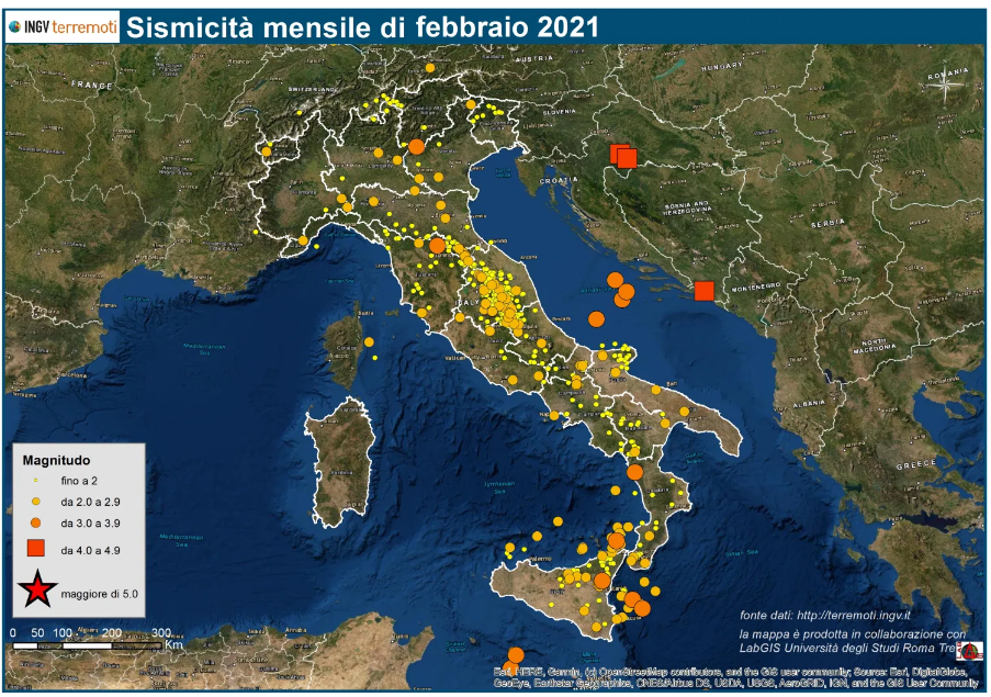 INGV: ecco le mappe mensili della sismicità di febbraio 2021