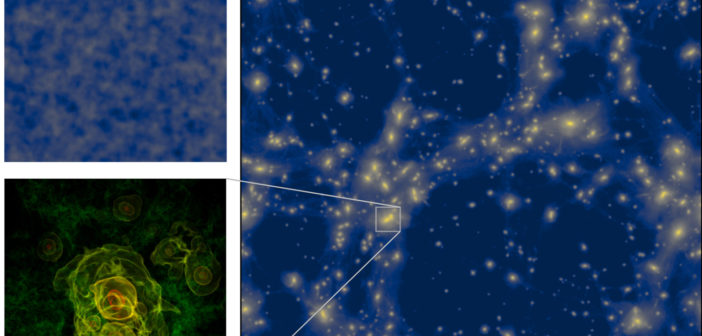 I ricercatori sono stati in grado di osservare lo sviluppo di regioni di maggiore densità, tenute insieme dalla loro stessa gravità. «Lo spazio fisico rappresentato dalla nostra simulazione entrerebbe in un singolo protone un milione di volte», afferma Jens Niemeyer, a capo del Gruppo di cosmologia e astrofisica presso l’Università di Göttingen. I ricercatori hanno trovato che queste regioni raggiungono masse fino a 20 chili e raggi dell’ordine di 10-20 metri, più o meno 10-24 secondi dopo il Big Bang. «Probabilmente è la più grande simulazione della più piccola area dell’universo che sia stata effettuata finora». Tali simulazioni consentono di fare previsioni più precise delle proprietà di questi grumi fin dagli inizi dell’universo.