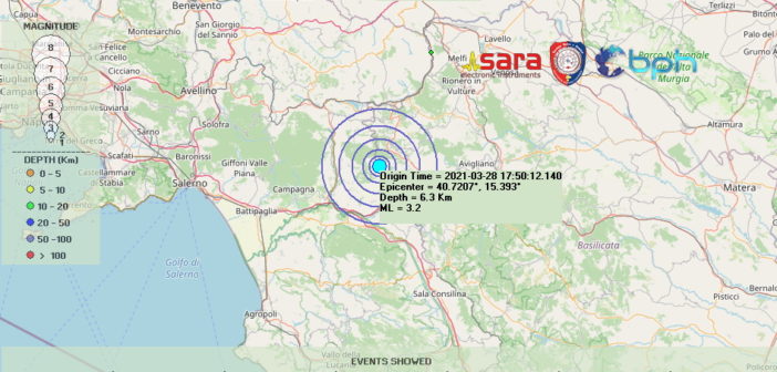Una scossa di terremoto di magnitudo 3.2 è avvenuta alle ore 19:50:12 italiane nella zona di San Gregorio Magno, nel Salernitano in Campania, con ipocentro alla profondità di 6,3 km.
