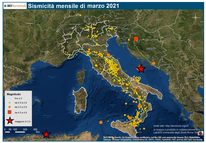 Le mappe mensili della sismicità di marzo 2021