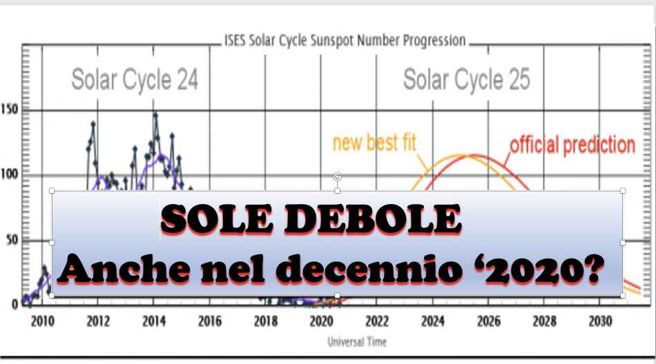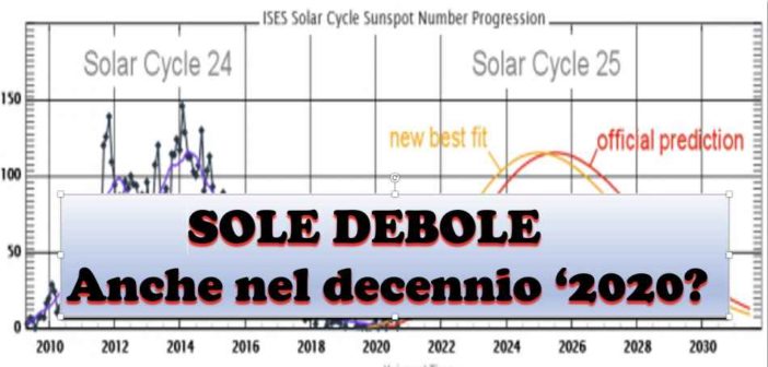 Ma anche il prossimo ciclo undecennale n.25 in corso secondo gli Astrofisici sarà molto debole ovvero con circa appena 100 macchie solari
