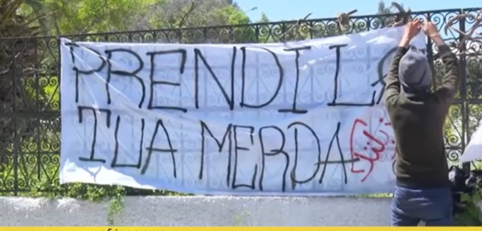 Dopo le proteste degli attivisti tunisini dei giorni scorsi, davanti all’ambasciata italiana a Tunisi (con plateali cartelli come quello che riportiamo in foto, ndr), adesso è anche Legambiente a chiedere al Governo di «intervenire urgentemente per riportare i rifiuti campani trasferiti in Tunisia, in attesa di rivalersi nei confronti dei responsabili del traffico all’esito del procedimento giudiziario», che si è avviato a dicembre 2020