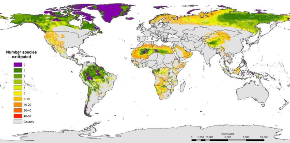 Il nuovo studio ha adottato un approccio diverso: invece di concentrarsi sull’impatto umano, ha analizzato i siti Criterion C delle Key Biodiversity Areas (KBA), una classificazione secondo la quale «Una comunità ecologica intatta ha il pieno complemento di specie note per essere presenti in un particolare sito nelle loro abbondanze naturali (cioè perdita di animali non conosciuta in quella zona), rispetto a un parametro di riferimento regionale appropriato».