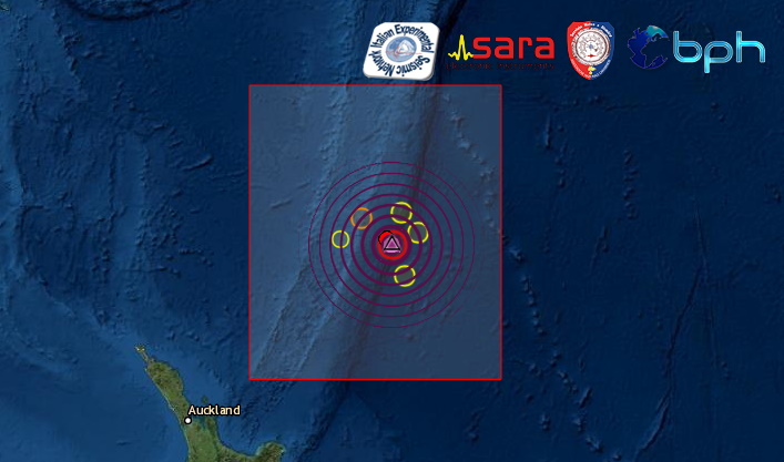 L’epicentro è stato localizzato in mare, 937.4 km a SW della località di Ngunguru, Northland, New Zealand