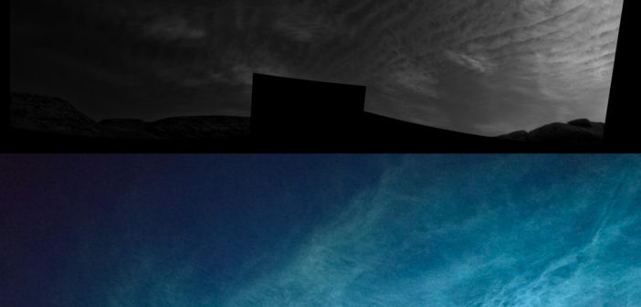 Le strutture sottili e increspate di queste nuvole si possono vedere già dalle immagini delle telecamere di navigazione di Curiosity, in bianco e nero. Ma sono le immagini a colori della Mastcam, che brillano davvero – letteralmente: subito dopo il tramonto, i cristalli di ghiaccio catturano la luce in dissolvenza, facendoli sembrare brillare contro il cielo sempre più scuro, per oscurarsi quando l’ombra del pianeta impedisce al Sole di raggiungere quella altitudine. Sono delle vere nubi nottilucenti.