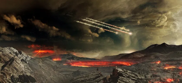 La maggior parte delle vicende che riguardano la comparsa della vita sulla Terra si svolsero in un intervallo di tempo che va circa da 4,6 a 4,0 Ma, un eone della Scala dei Tempi Geologici, che i geologi hanno chiamato informalmente Adeano (dal greco Ade, “Inferi”). Gli studiosi ritengono che a quel tempo, a causa di un continuo bombardamento di asteroidi, la giovane Terra fosse più simile all’inferno: un oceano di magma e fuoco avvolto da una spessa atmosfera ricca di vapore.