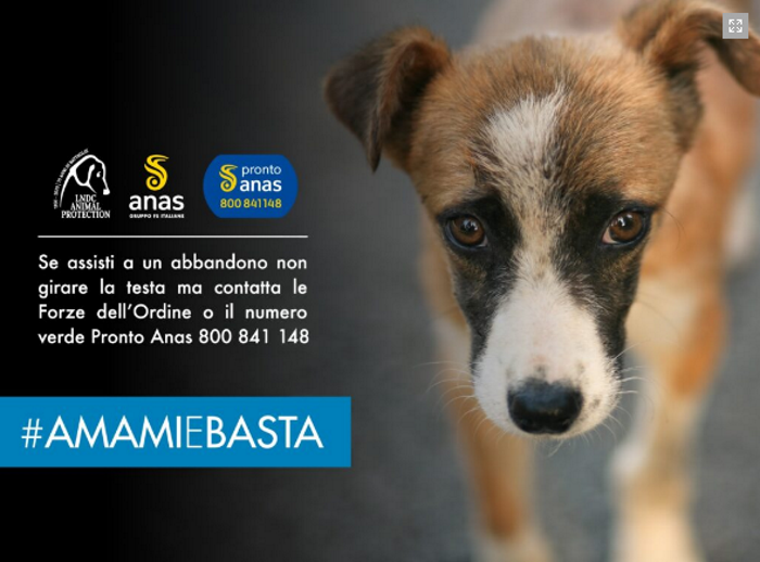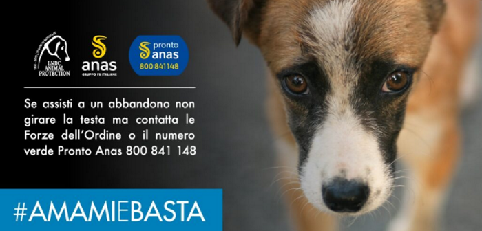 LNDC ricorda che «in Italia, infatti, si registrano migliaia di incidenti stradali, spesso anche mortali, causati da animali vaganti o randagi ed è bene ricordare a ogni cittadino che chi abbandona un animale non commette solo un reato ai danni dell’animale stesso, ma potrebbe rendersi responsabile anche di omicidio colposo». #AMAMIeBASTA invita ogni cittadino che incontri un animale randagio o vagante a fare principalmente due fondamentali azioni: «La prima metterlo immediatamente in sicurezza, la seconda chiamare subito il numero verde “Pronto Anas” 800.841.148 e le forze dell’ordine (Polizia stradale, Carabinieri, Polizia locale e/o Vigili del Fuoco), organi preposti per legge a intervenire. Nel caso in cui si assista direttamente all’abbandono, inoltre, è importante se possibile prendere il numero di targa del veicolo che lascia l’animale, da segnalare alle autorità per facilitare l’identificazione del colpevole».