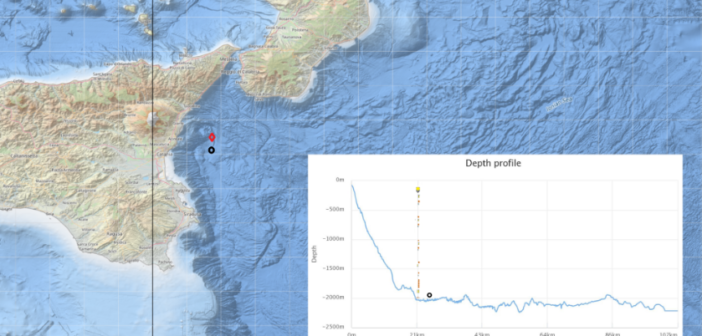 In questo quadro un mooring, realizzato in collaborazione tra INGV e CNR-ISMAR, è stato installato il 16 luglio 2021 nel Mar Ionio ad una profondità di circa 2000 metri. Un mooring è un insieme di strumenti disposti lungo un cavo ancorato sul fondale marino. Costituisce un punto fisso di misura che permette di registrare nel tempo differenti parametri chimico-fisici e dinamici a diverse profondità. Il punto di osservazione è stato collocato a 25 km davanti la costa orientale siciliana e a circa 1,5 km a Nord dell’osservatorio Western Ionian Sea, nodo dell’infrastruttura di ricerca europea EMSO, Figura 2.