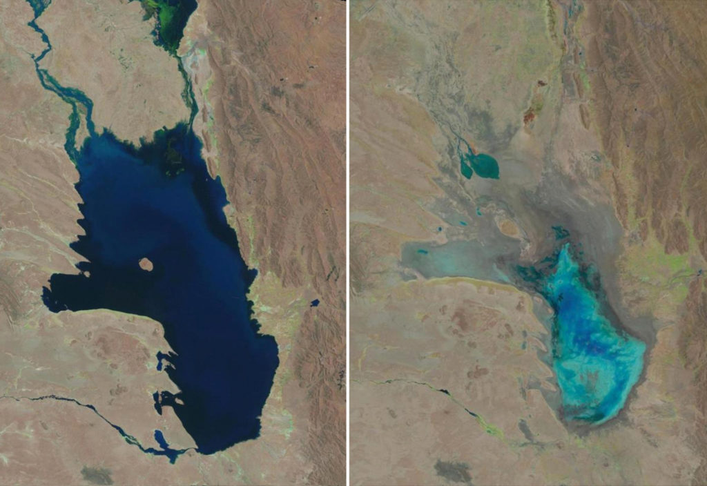 Prosciugato dal cambiamento climatico e da decenni di deviazione delle sue acque per l’irrigazione