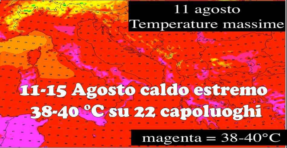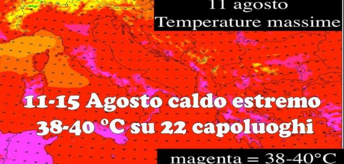 Al Centro-Sud il caldo estremo colpirà SOPRATTUTTO tra l’11 e il 13 agosto; al Nord invece tra il 13 e il 15 agosto.