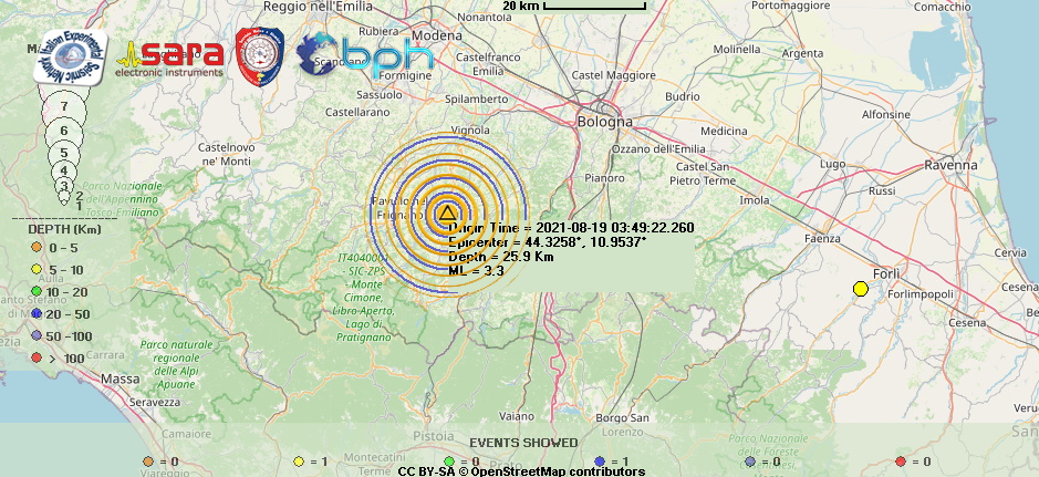 Una scossa di terremoto di magnitudo (Ml) 3.3 è stata registrata alle ore 05:49:22 sull’appennino Modenese in Emilia con ipocentro alla profondità di 26 km. I comuni più vicini all’epicentro sono stati