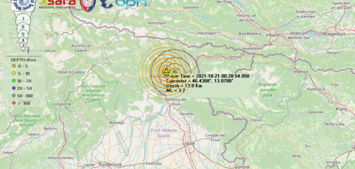 Un terremoto di magnitudo (Ml) 3.7 è avvenuto alle ore 02:28:54 ed è stato localizzato nella zona di Tolmezzo (UD) in Friuli, con ipocentro alla profondità di 13 km. Le località più vicine all’epicentro sono state
