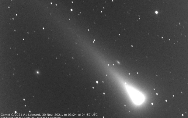 “Scoperta il 3 gennaio di quest’anno la cometa C/2021 A1 Leonard, o più semplicemente cometa Leonard, aveva lasciato subito intendere che aveva la possibilità di diventare discretamente luminosa e magari giungere alla soglia di visibilità ad occhio nudo poco prima della metà di dicembre. E così è stato”, ha commentato l’astrofisico Gianluca Masi, responsabile del Virtual Telescope.