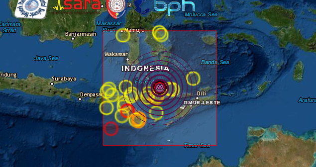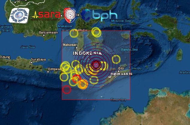 FORTISSIMA SCOSSA DI TERREMOTO DI Mw 7.3 NEL MARE DI FLORES IN INDONESIA